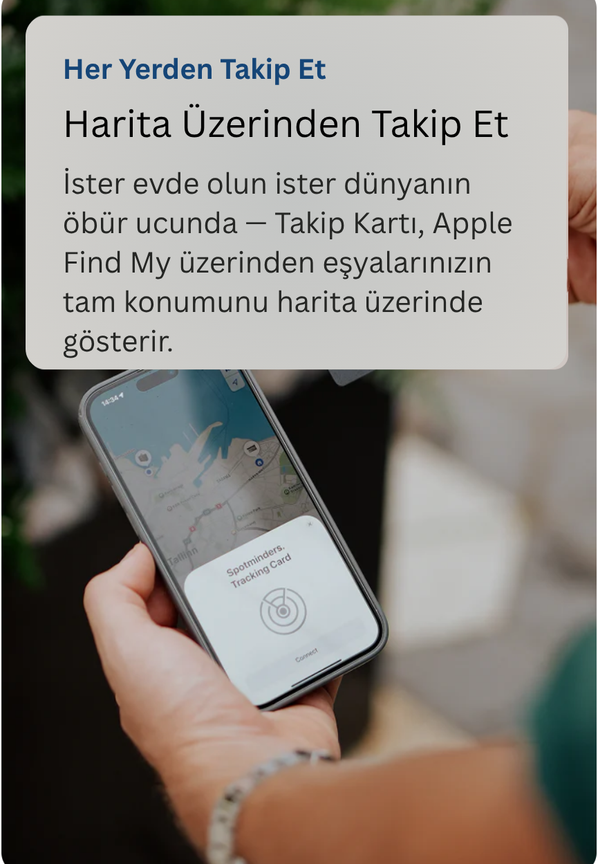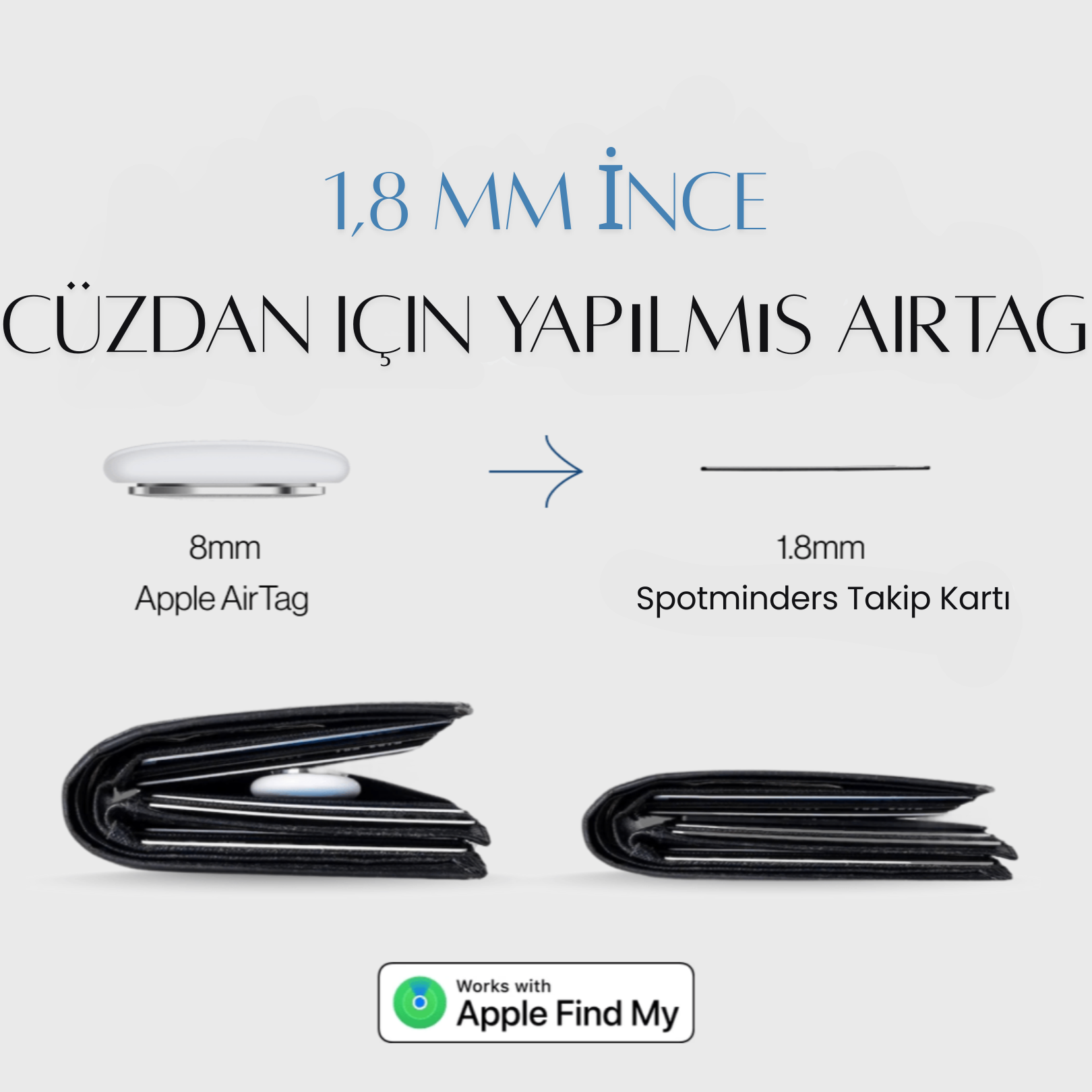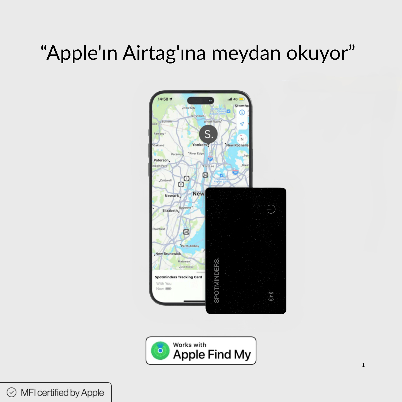 Şu anda Spotminders Takip Kartı, yalnızca Apple cihazları ve Find My uygulaması ile kullanılmak üzere optimize edilmiştir. Ancak, gelecekte diğer platformlarla da uyumluluğu genişletmek için çalışmalarımız devam etmektedir.